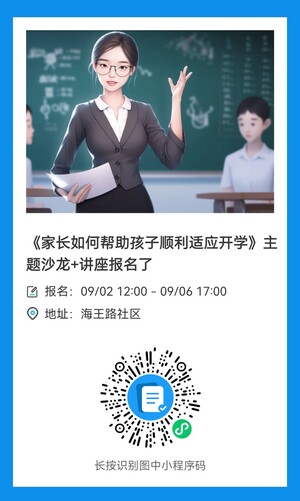 開學快一個周了,你家娃上學順利嗎?有一些孩子這期間可能出現(xiàn)肚子疼、頭疼、或者類似感冒的癥狀。這可能是開學焦慮帶來的軀體反應(yīng)。?????為此,海王路社區(qū)心靈驛站特別推出公益講座+沙龍,和您一起聊聊,開學這一周,作為家長您有什么體會,在未來的日子里可能需要得到哪些幫助,公益講座也會教給您一些小妙招,如何讓孩子更順利的適應(yīng)上學節(jié)奏,如何緩解父母的入學焦慮,如何正確引導孩子解決好自身的情緒·歡迎預約報名